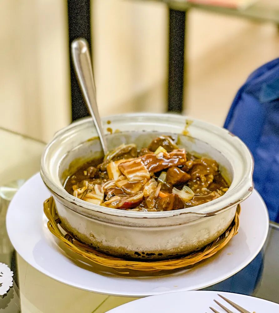 国内家里吃羊肉煲都会在最后起锅前加入白菜或上海青一起烩进去,可以带走大部分的膻味。所以这道羊肉煲味道已经无限接近于儿时的记忆了。唯一有点跳跃的是他的五香八角多加了一丢丢的,稍微有点盖住了红烧羊肉和白菜的香气。但一想到身在几千公里外的苍蝇馆子里还能吃到这个家乡的味道,还真有点感动。
