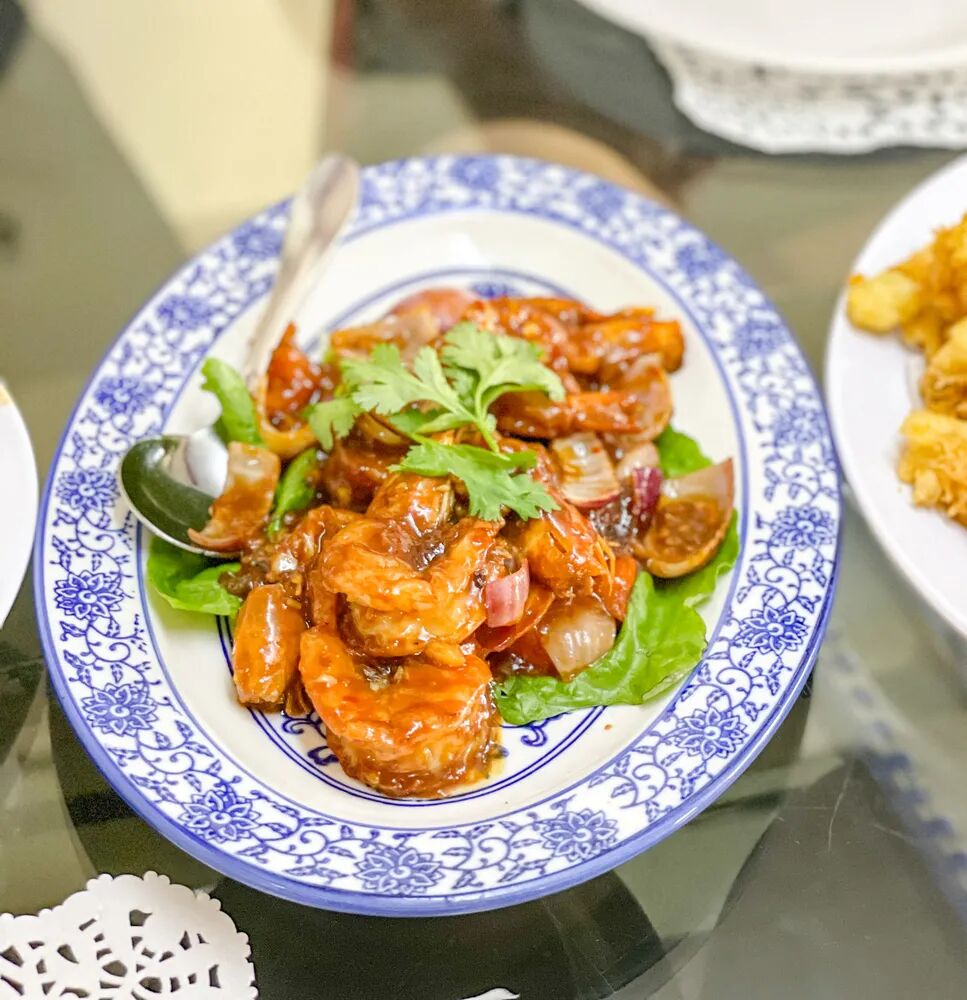 桑巴酱是马来西亚菜系里最广泛用的酱汁,经常用于娘惹菜和街边小吃之中。其实我个人感觉接近于国内沿海城市常吃的虾酱,而用桑巴酱炒制勾芡而成的桑巴虾,海鲜味道更加浓郁,醇厚,口齿留香。