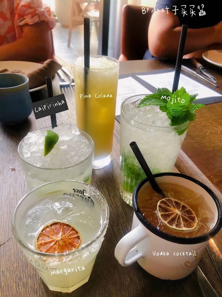 鸡尾酒方阵来了,具体名字请参考图里面的注释。爱喝酒的朋友们一定要试试Caipirinha,据说说是巴西最受欢迎的鸡尾酒。酒量不好又想喝酒搞气氛的朋友们,请一定要点Pina Colada,真的不要太爽啊!其他三款都是比较常见的类型,我就不赘述了。
