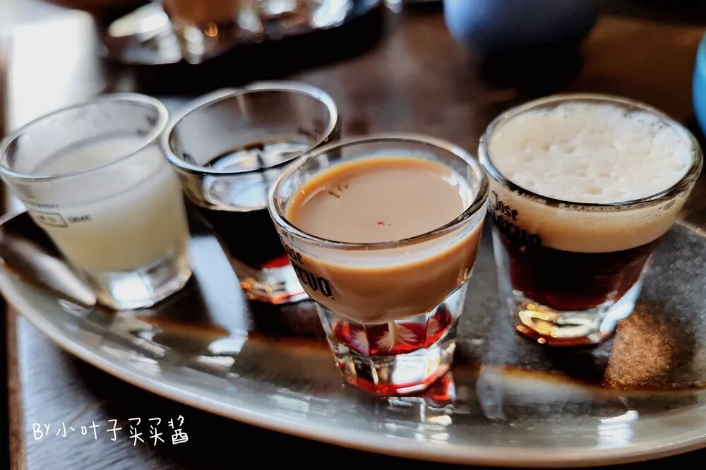 下面右图这杯颜值超高,必须给个特写,我的小伙伴一口闷了,据她描述上面是类似百利甜的奶酒,下半层透明的是果冻质地,口感非常特别。右图是我们加点的Espresso Martini, 小伙伴管这个叫酒里面的甜品,入口有咖啡的微苦,奶香然后是酒的味道。这一杯感觉是不管能不能喝的人都会喜欢的类型。我是完全不懂品酒且酒量极差,但是偏又喜欢凑个热闹,配合着Toro Toro的餐厅氛围,不来一杯真心感觉错过太多美好。