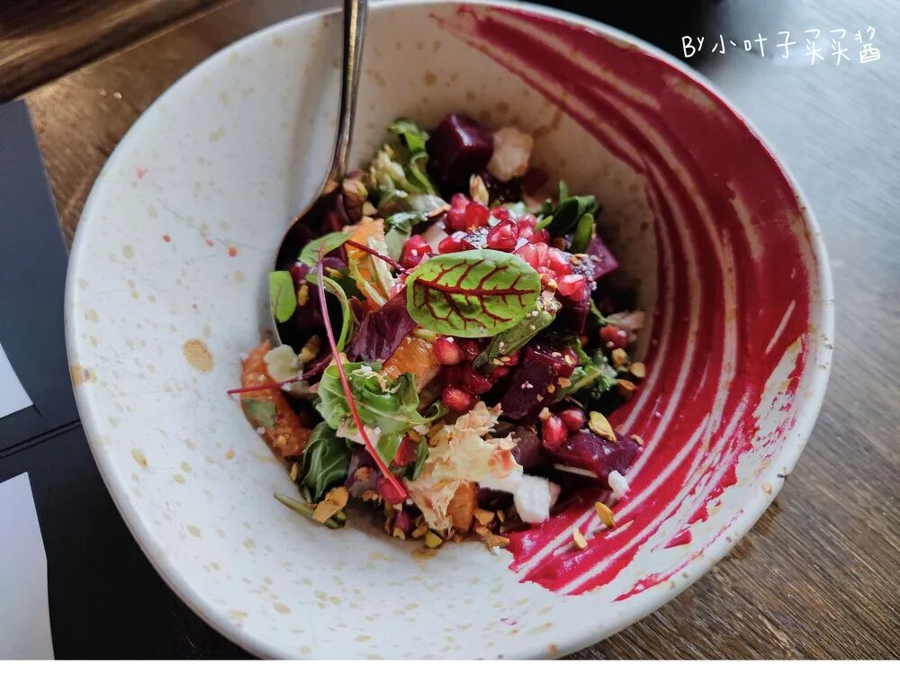 主菜有3道,一道沙拉,一道鱼和牛排。这个羽衣甘蓝配上石榴和芒果的沙拉,看起来平平无奇,服务员端上来的时候我还想说就这沙拉也算一道主菜吗?服务员说这是Toro Toro的招牌沙拉,看着真的不像,吃一口就真香了。咦,羽衣甘蓝什么时候变得这么好吃了,这个沙拉的搭配配得上招牌二字。牛排也是相当厉害,烤得刚刚好,非常嫩,完全不需要其他的酱料来搭配,原味就是最厉害的,个人觉得光是这一份牛排就值回票价了。