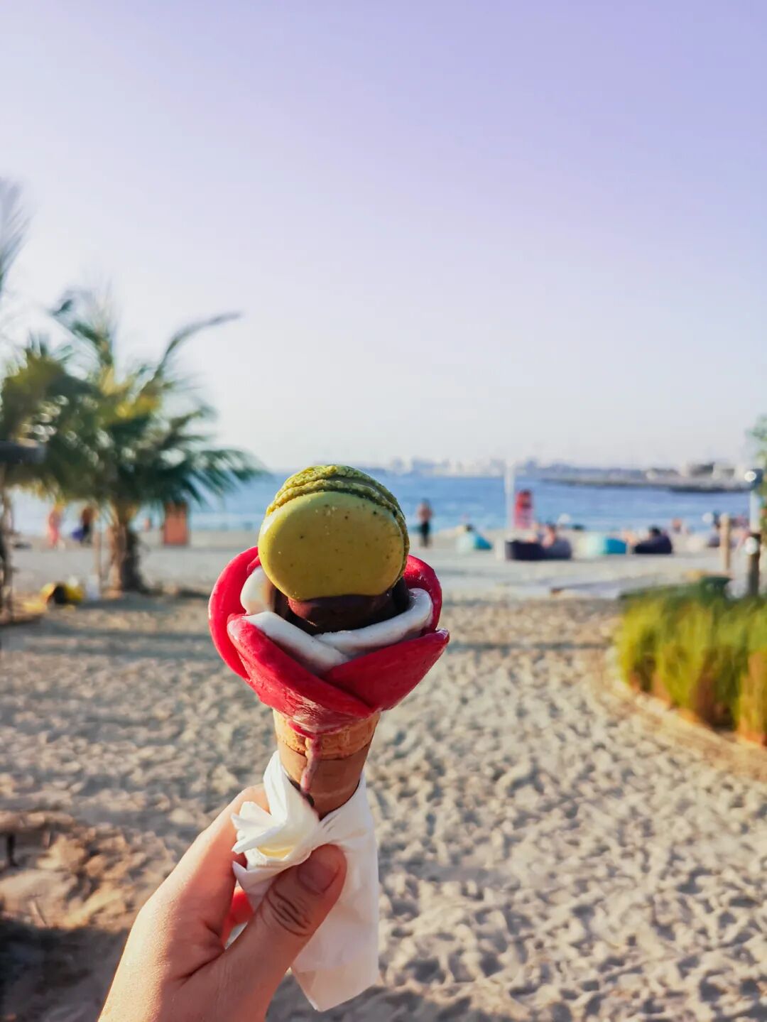 在海边吃上这样一根玫瑰冰淇淋,也是不一样的体验,给日常生活增添一点色彩吧!