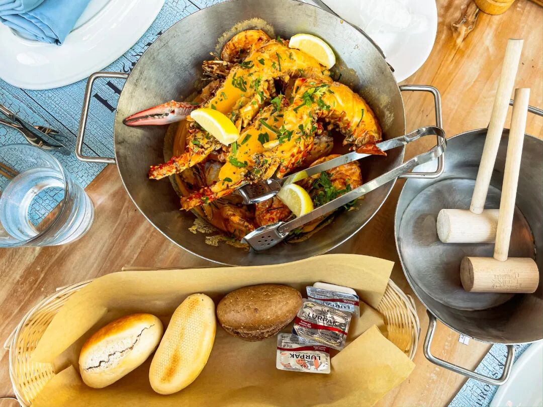没有什么比在海滩上品尝海鲜更好的了,今天来尝这家名叫“锤子和围裙”的美式海鲜餐厅。餐厅供应美味,刚捕获的海鲜,可以看到客人穿着围裙,用锤子砸开螃蟹和龙虾菜肴。他们的招牌菜是秘制草药和辣腌料,再加上创新的风味组合。如果不喜欢海鲜,餐厅还提供素食和肉类菜肴。