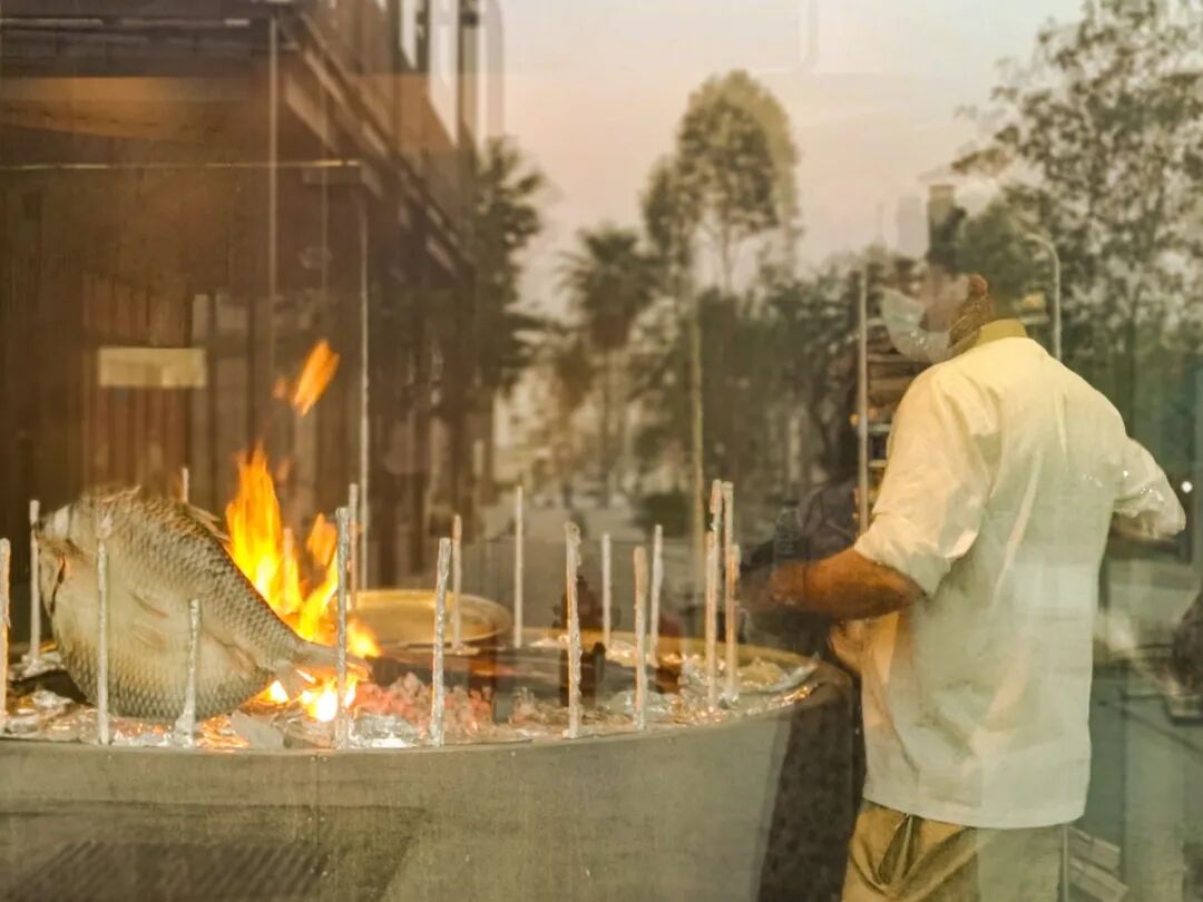 这家餐厅以鱼和肉的伊拉克烧烤方式闻名,这些鱼是淡水扁平鱼,鱼很大,它们的重量为8到10磅(4千克),用辣味或常规味腌制而成,并以传统的美索不达米亚风格在其侧面烧烤,这种烧烤方式虽然耗时较长,但却能很完美的保留鱼肉本身的汁水。
