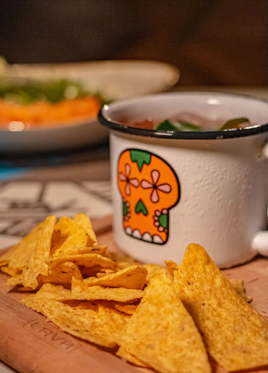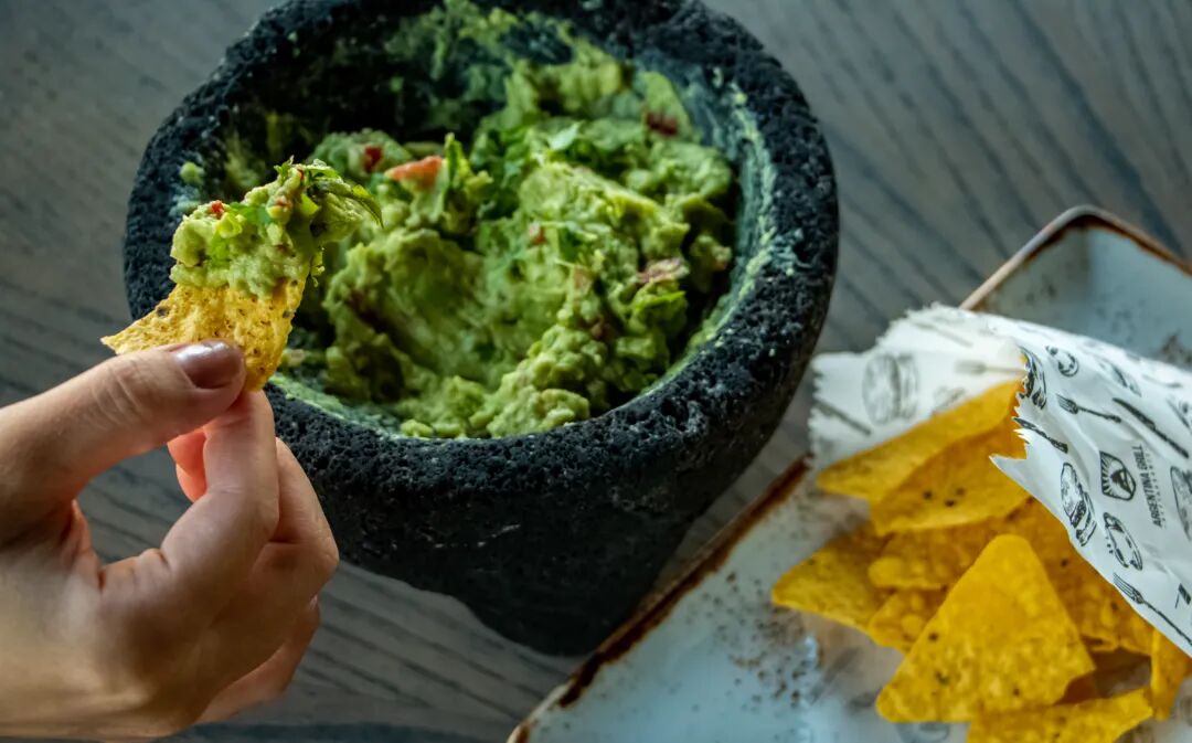 这是一道很传统的墨西哥前菜,将牛油果用石锤碾磨成泥,加入番茄丁、洋葱丁、少许芫茜末,挤入半个青柠汁、少许盐混合,尝起来是辛辣中带点果蔬的爽口,配上玉米片的干脆,清新又开胃。