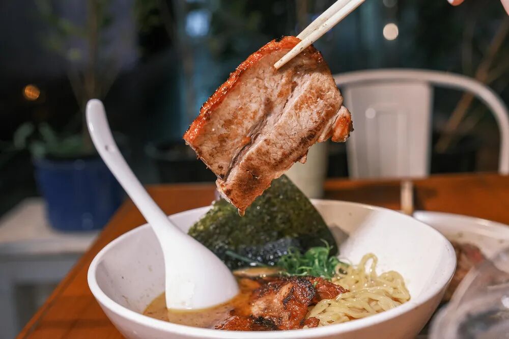 不得不说Maxzi除了餐厅的身份,也不愧是一家高阶牛肉批发商,三大片如此垂涎欲滴的牛肉叉烧压根不可能在别的拉面馆里出现。而且这叉烧层次分明,油而不腻,近乎入口即化,不是优质牛肉根本达不到这个口感。Maxzi主打的就是澳洲和牛,且不含任何激素防腐剂。