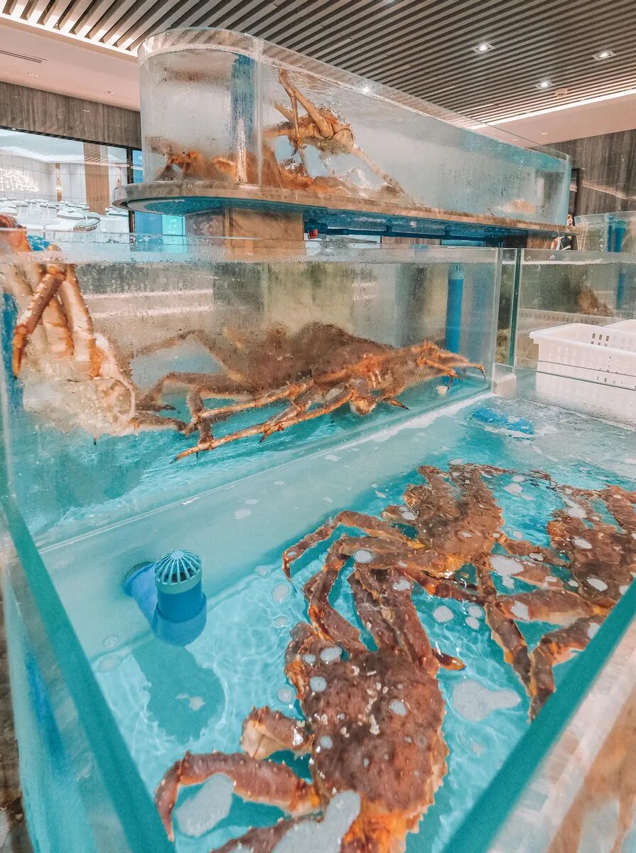粤菜向来注重海鲜,于是江南春配备了活鲜水缸,展示着生龙活虎的澳洲大龙虾、阿拉斯加帝王蟹等,光看这阵势就让人食欲大振了。同时江南春作为国际城唯一一家拥有合法酒牌的餐厅,让华人就餐小酌免去了风险。