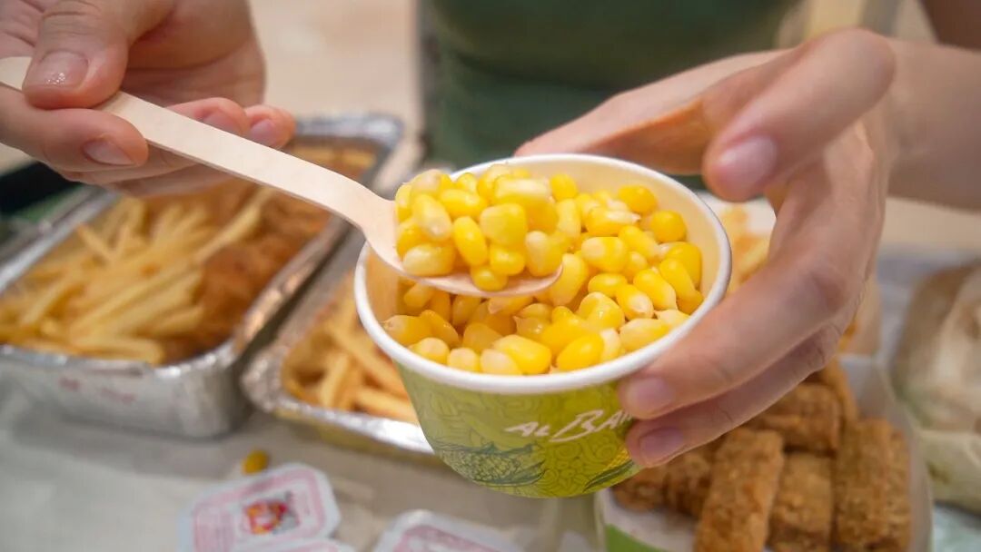 这里出售两种玉米。一种是整个的一根玉米,还有一种就是这种碗装的,属于清淡水煮口味的。但它里面会配一个盐袋,然后还有一块黄油,混合摇拌一下就可以吃了,但是小编觉得不加,直接原味的会更好吃一些。