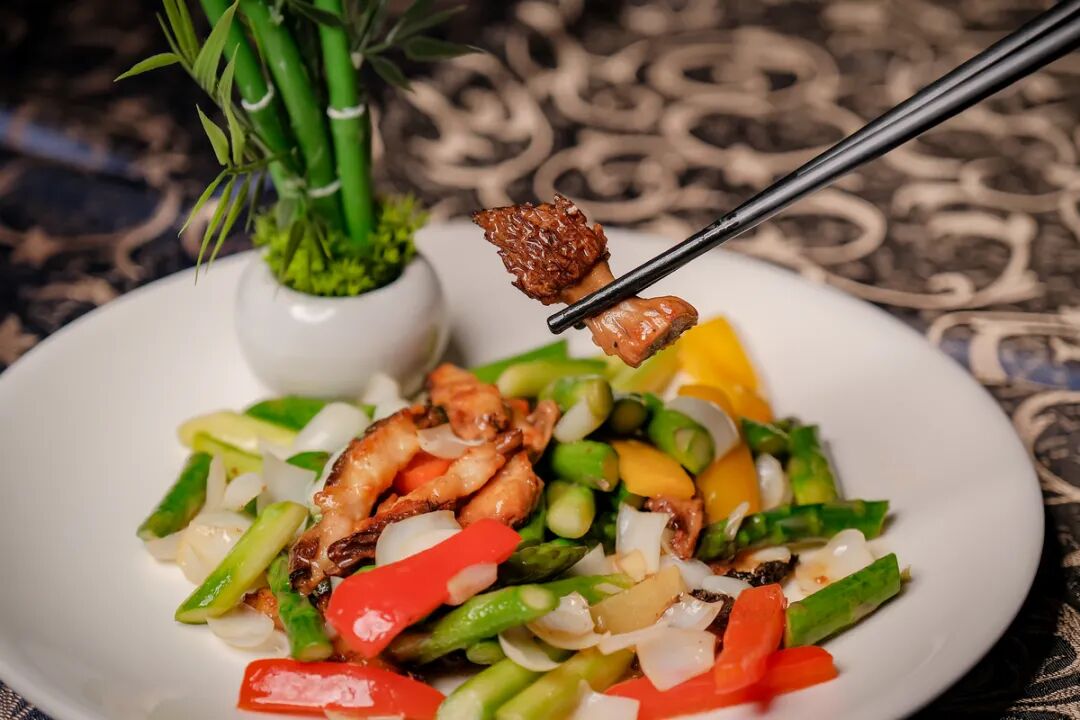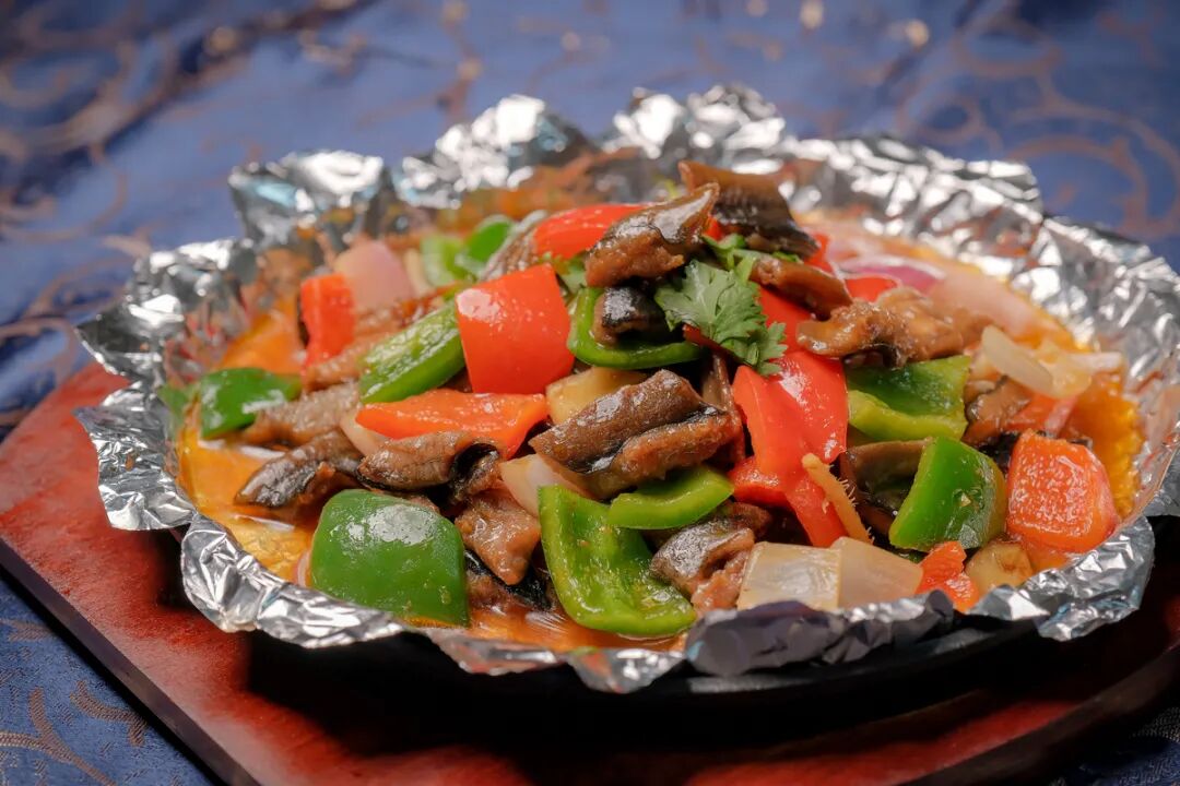 这道菜可谓非常家常口味。鳝鱼在迪拜不常见,用的是当天新鲜现宰的黄鳝,肉质紧实,通过油炸,爆炒,高温的快速烹饪,再放置烧热的铁板上,更能保持这道菜的温度和口感。