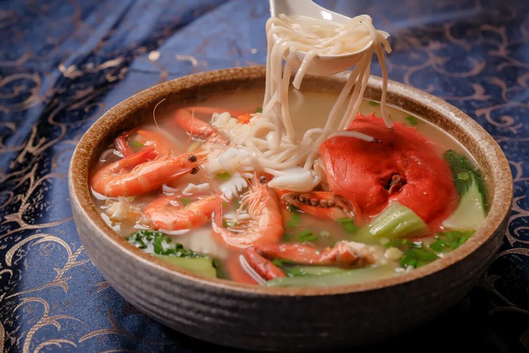 这是一道非常地道的江浙沿海地区的美食,也叫蝤(yóu)蠓(móu)三鲜面,而蝤蠓,在温州地界指的就是青蟹啦。这碗面配上满满海鲜食材,诸如青蟹、活虾、花蛤、鱿鱼,其中蟹脚蟹肉超级饱满,使得整个面吃进嘴里,充斥着食材本身浓郁的鲜味,鲜到掉眉毛,这汤也是很绝,被小编喝的干干净净。