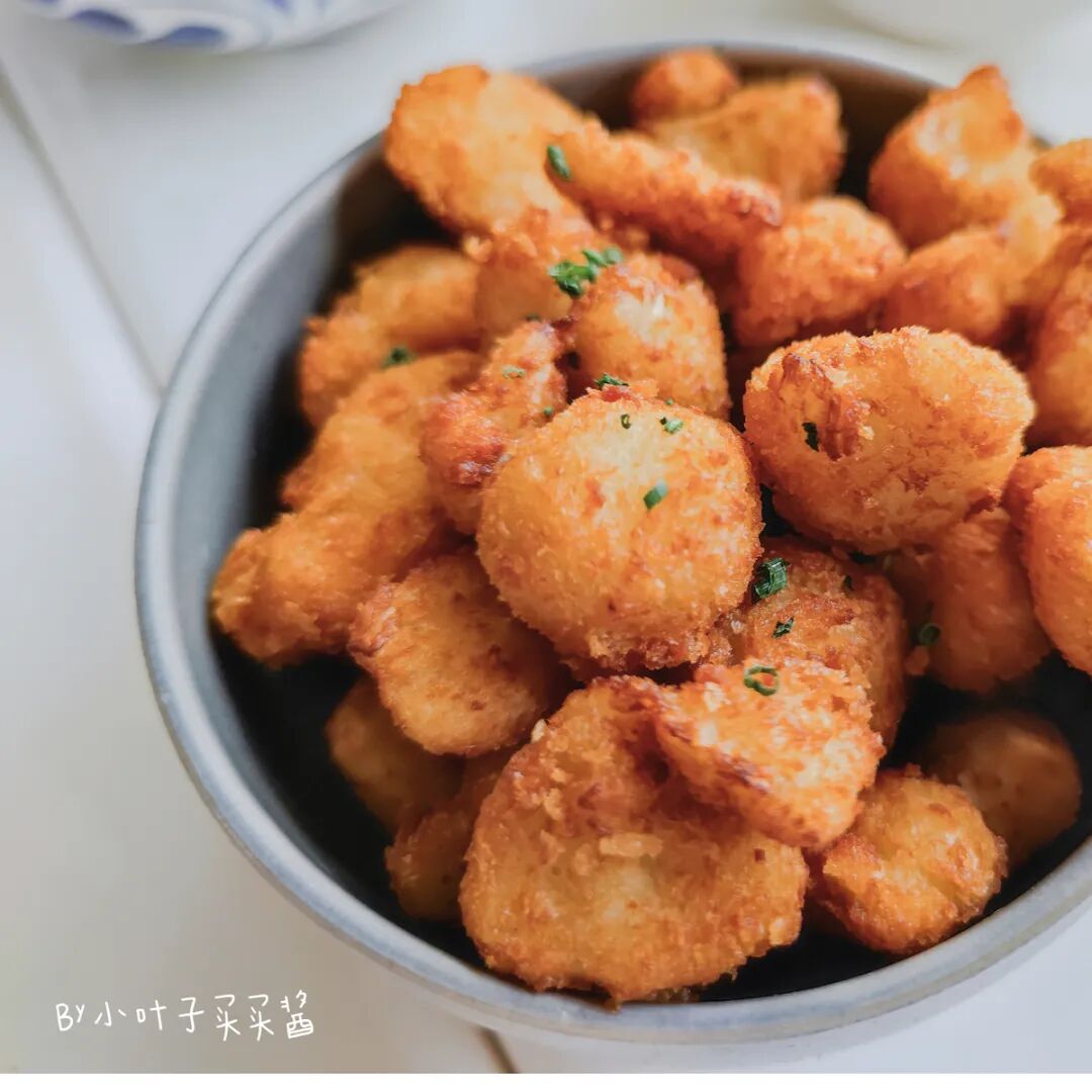 这一道也是惊喜值max,我们后来加点了好几份。第一口完全吃不出来这是一道素食,店员说这就是纯花菜,我们还在争论说不可能,吃起来很有肉感,你以为它的惊喜就停着这了吗?NoNoNo,最惊喜的是它搭配的酱料,酱料是用绢豆腐打成非常绵密细腻的口感再配上松露油和帕玛森芝士,果然炸物配松露油就是yyds。