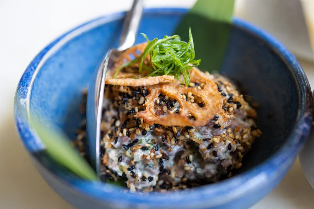 这一道真的厉害,是买买酱心中的第一。很想问问厨师怎么去掉了球芽甘蓝本身的苦味。这个脆片搭配日式柠檬酱油,简直封神。这家的前菜有一个共同的特点,就是端上来的时候觉得普普通通,但是吃到嘴里总能带来惊喜,让我一直在那wow个不停。