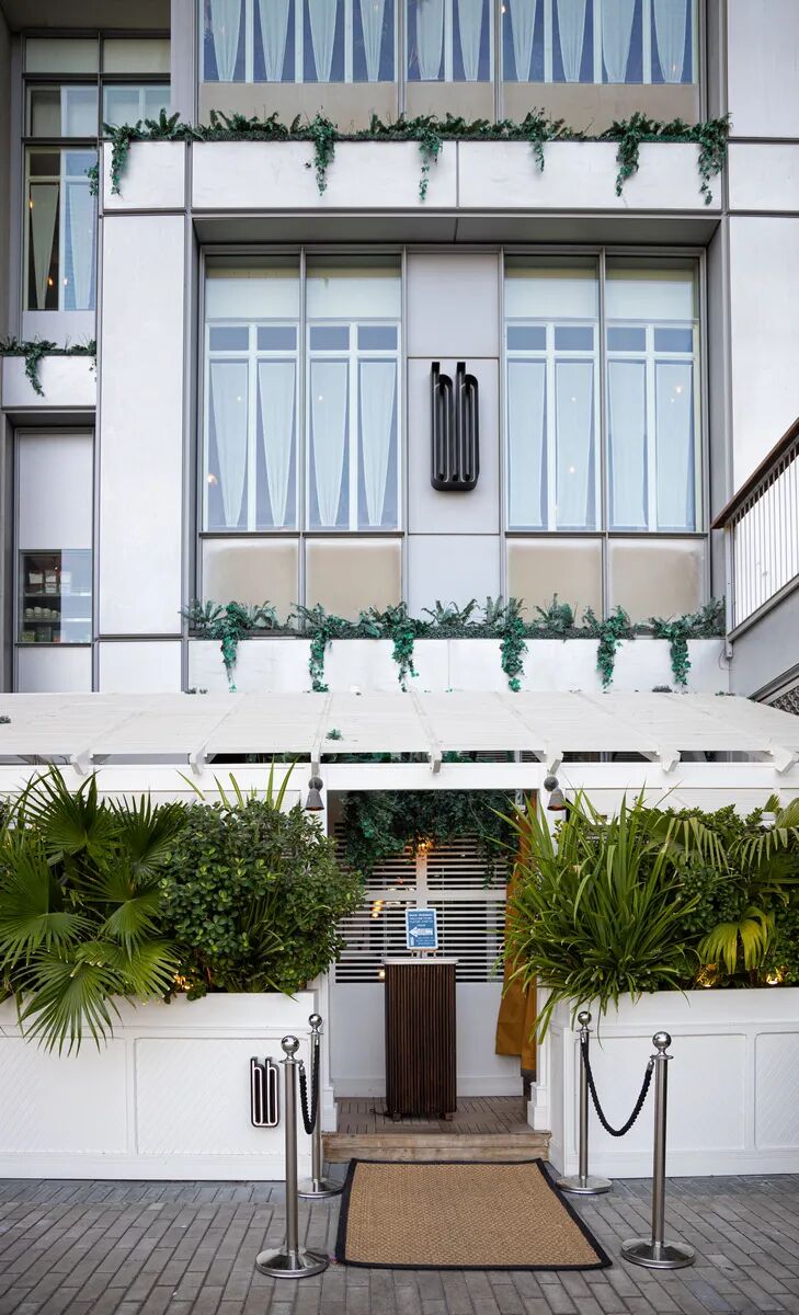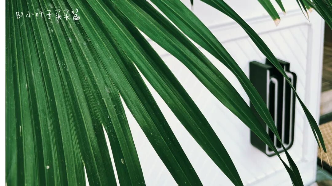 三层独栋小洋房,白色外墙配绿色植物加上简洁的黑色logo。