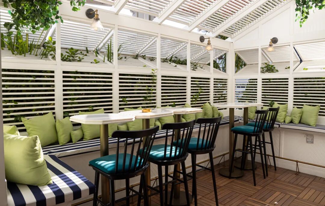 座位的选择很多,各种角度都很适合拍照打卡,妥妥的网红ins风。入门处的室内很适合下班来一杯happy hour。买买酱跟朋友们各种拍照打卡之后选择了坐在楼顶的室外区域,完全不晒,也不用担心热,这个季节温度正合适。