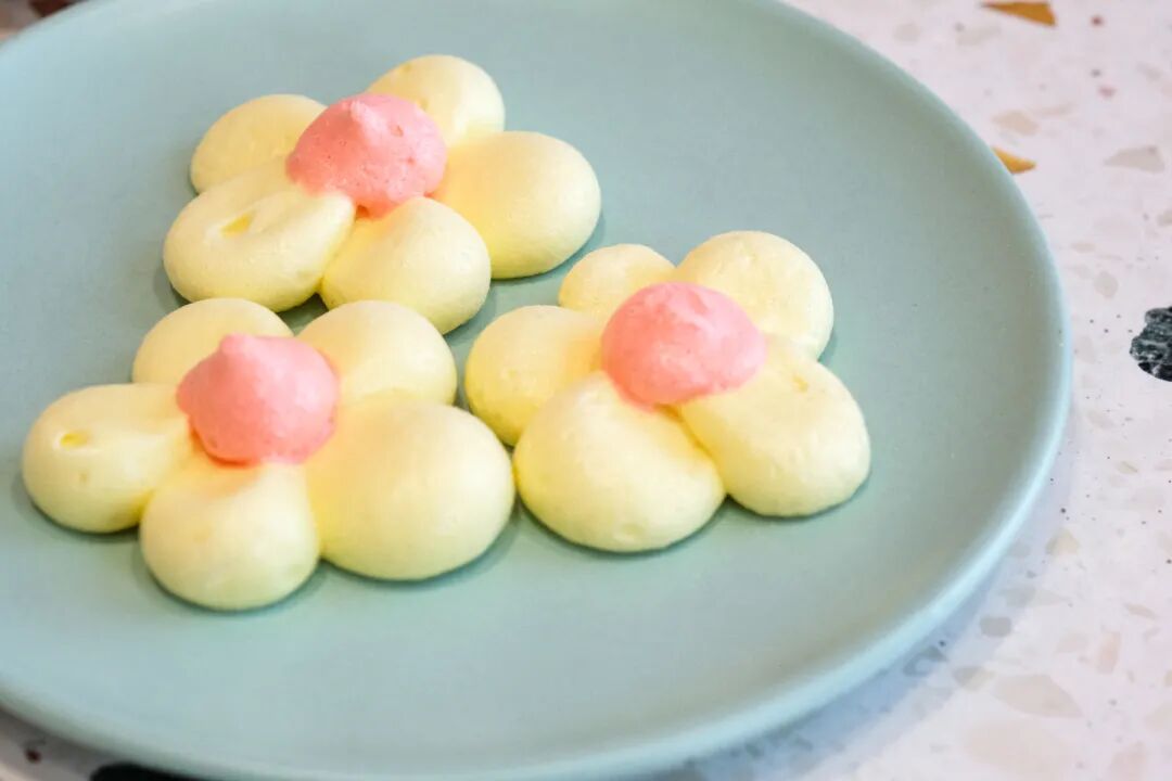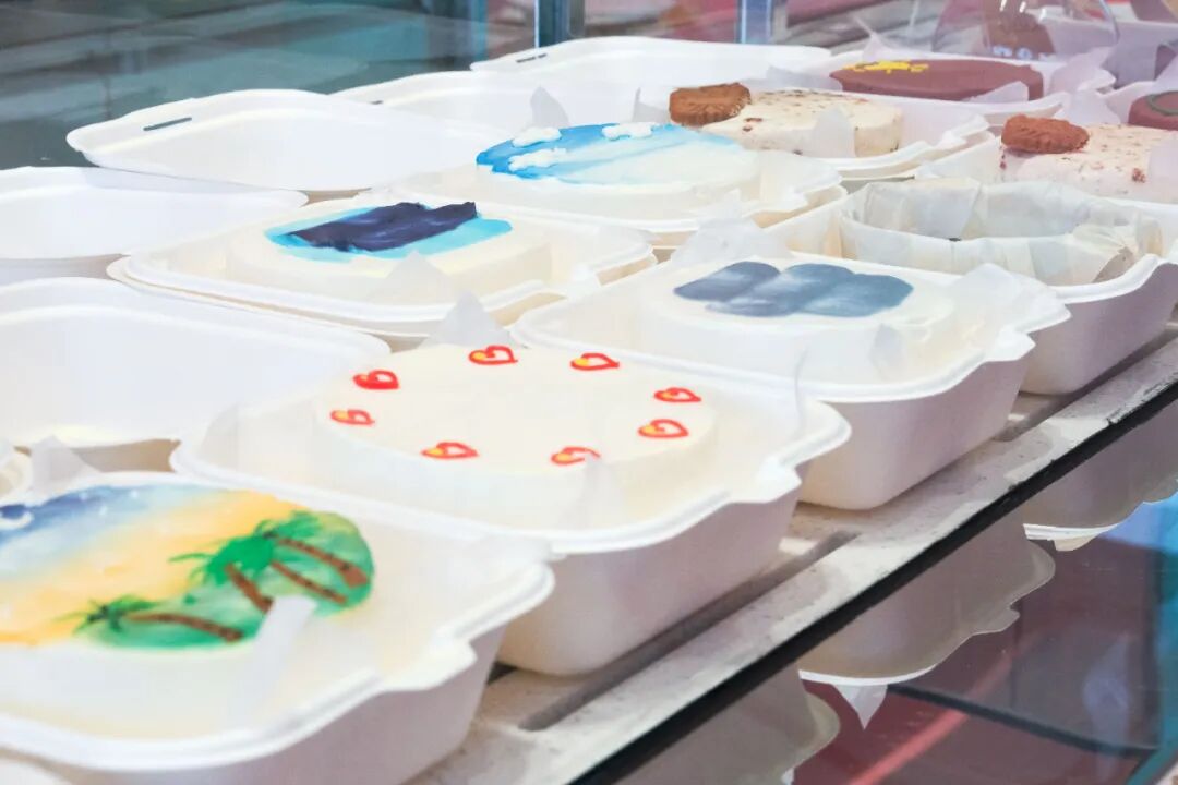 日常售卖的盒子蛋糕,朴实的外包装上,都有精致可爱的裱花。蛋糕总的来说小巧精致,适合垫肚子,不会让人吃的太饱。