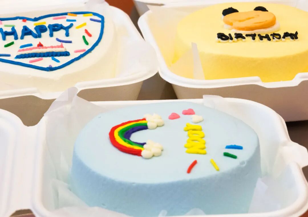 这款水彩风格的蛋糕颜值上是小编最喜欢的一款,大面积色块碰撞出了艺术调色盘的感觉,有着简单的线条明亮的色彩。即便是那么小的蛋糕,也可以加上你想要添加的文字,也可以作为生日蛋糕的小惊喜。但是店里暂时只能接受英文和韩语文字。