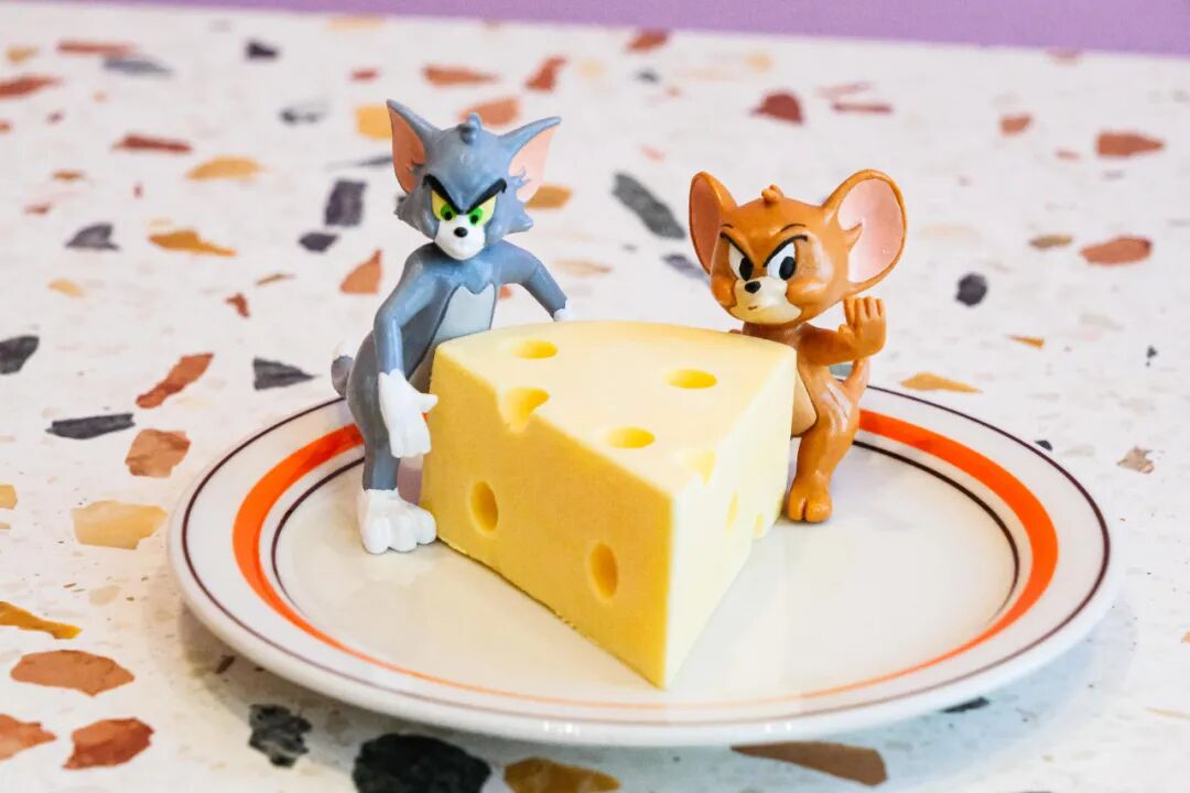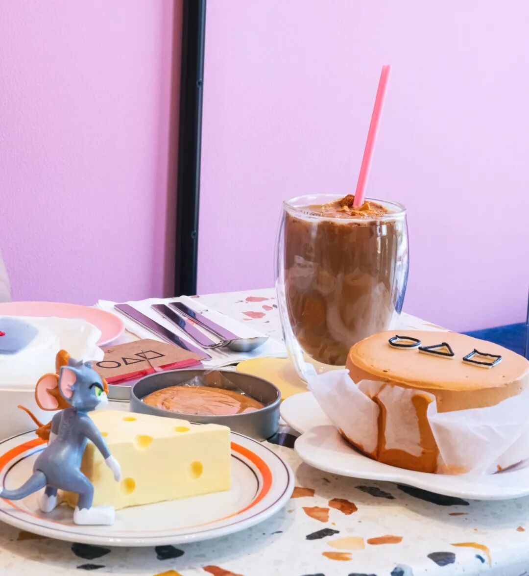 《猫和老鼠》主题芝士蛋糕,和动画里的一模一样,仿佛动画片里的食物栩栩如生地出现在现实里。形状超Q,小小一块,却很扎实,拿到时还冰凉冰凉的,看起来非常二次元,就像个玩具似的,却满满都是纯奶酪,入口既有熟芝士的口感,又有浓厚细腻的乳酪,多种味道冲击味蕾,我终于get到jerry疯抢300集的原因了。