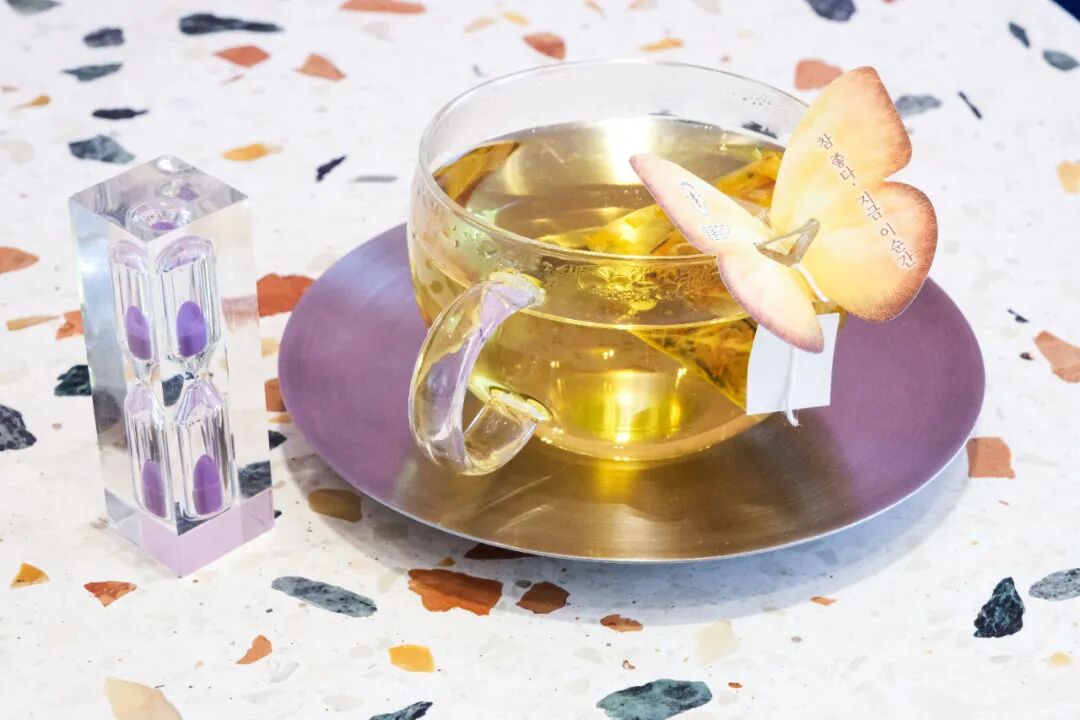 这一杯蝴蝶花茶,造型很别致,搭配的沙漏刚刚好是冲泡一杯茶的时间,忍不住吃了太多的小仙女们,最后可以点上一杯,暖暖胃。