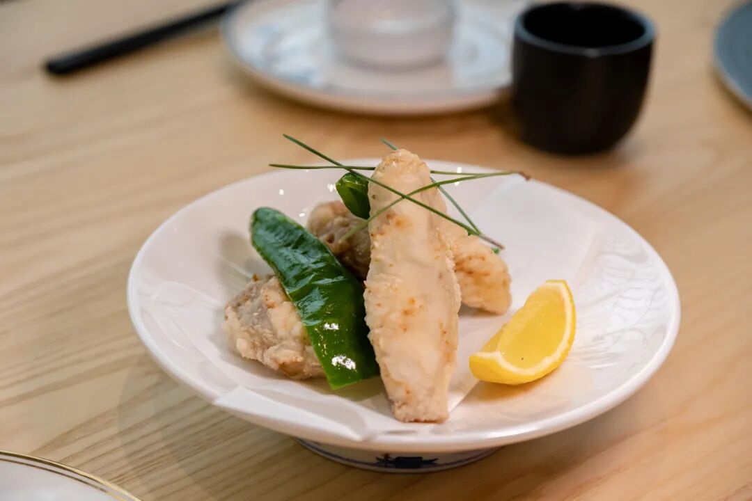 河豚去头尾内脏只余身体躯干,裹上薄薄的面衣高温油炸。外皮的香脆,以及内里鱼肉的软嫩形成了鲜明的对比。鱼肉一点腥味都没有,鲜美纯净的本味在油香的烘托下更为诱人。
