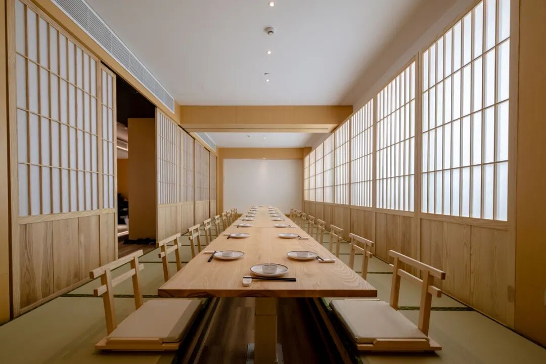 店内除了有散座,还有3个可容纳8-10人的榻榻米包厢,非常有和风的感觉。且根据不同需求,还可扩容至可容纳20人的大包间。另外店内还设有可供客人观看厨师制作料理的“板前”席位。