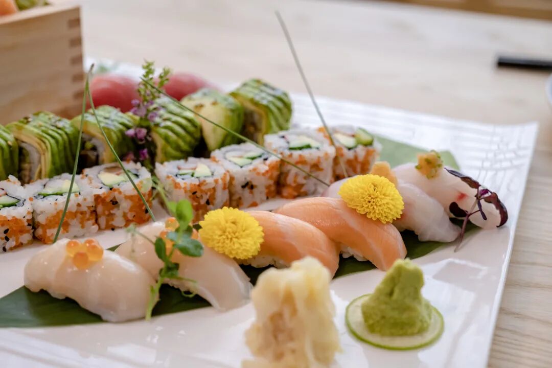 少见的石斑鱼刺身也在这道菜上呈现了出来,寿司选用了优质的日本短粒寿司米,颗颗分明,有粘性弹性且不粘牙,偏甜不酸。捏出来的手握形不散而有空气蓬松感,可以看出实力不错。