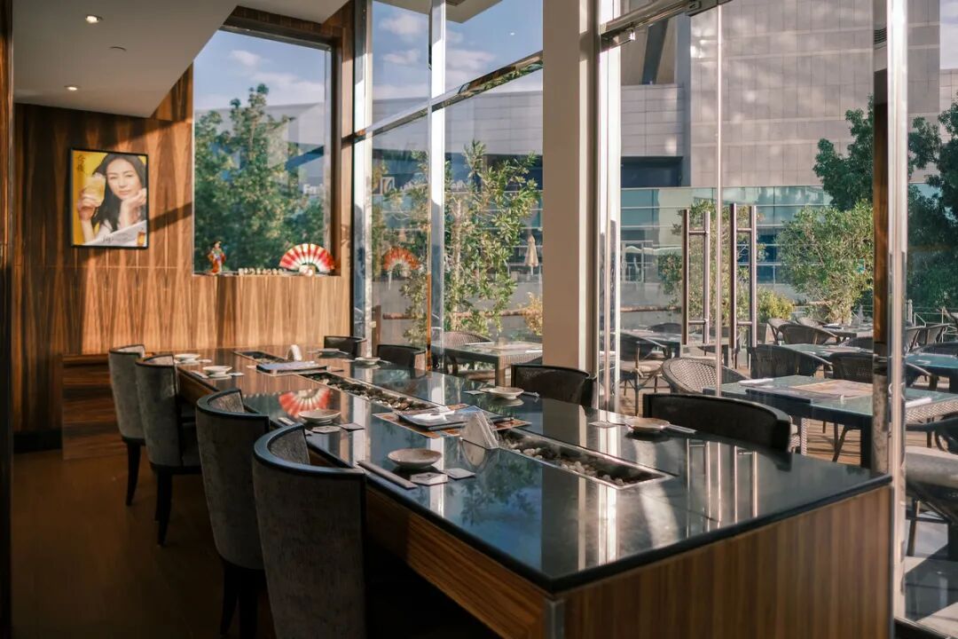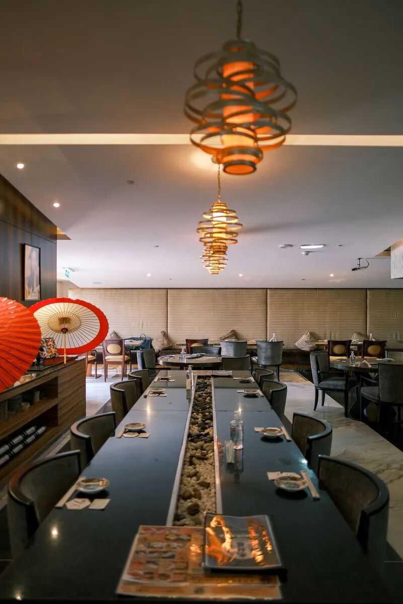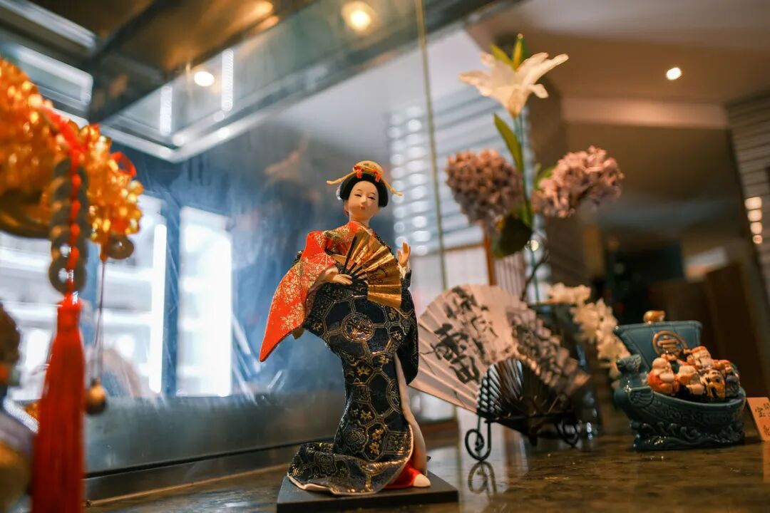 餐厅主要分为室内和室外,室内还伴有半开放厨房配上传统的日本装饰品像日本艺妓等,既让厨师与顾客互动也能让顾客欣赏到做饭的过程。