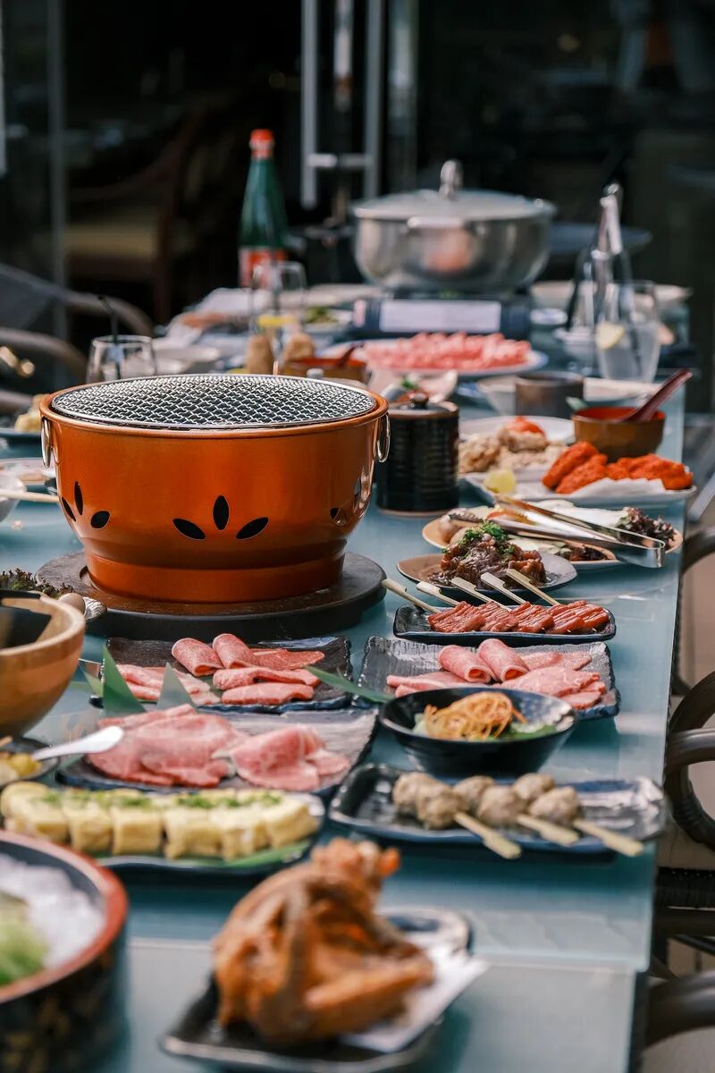 这次我们体验的是Kimuraya木村屋最新推出的「特选日本A5和牛套餐」(连菜单上都还找不到喔~),可选择火锅或烧烤的吃法。不仅有肉,套餐中还包含三文鱼刺身、金枪鱼刺身、各种寿司手握烧鸟炸鸡,堪称花式大满足套餐,而且都可以无限点选!!