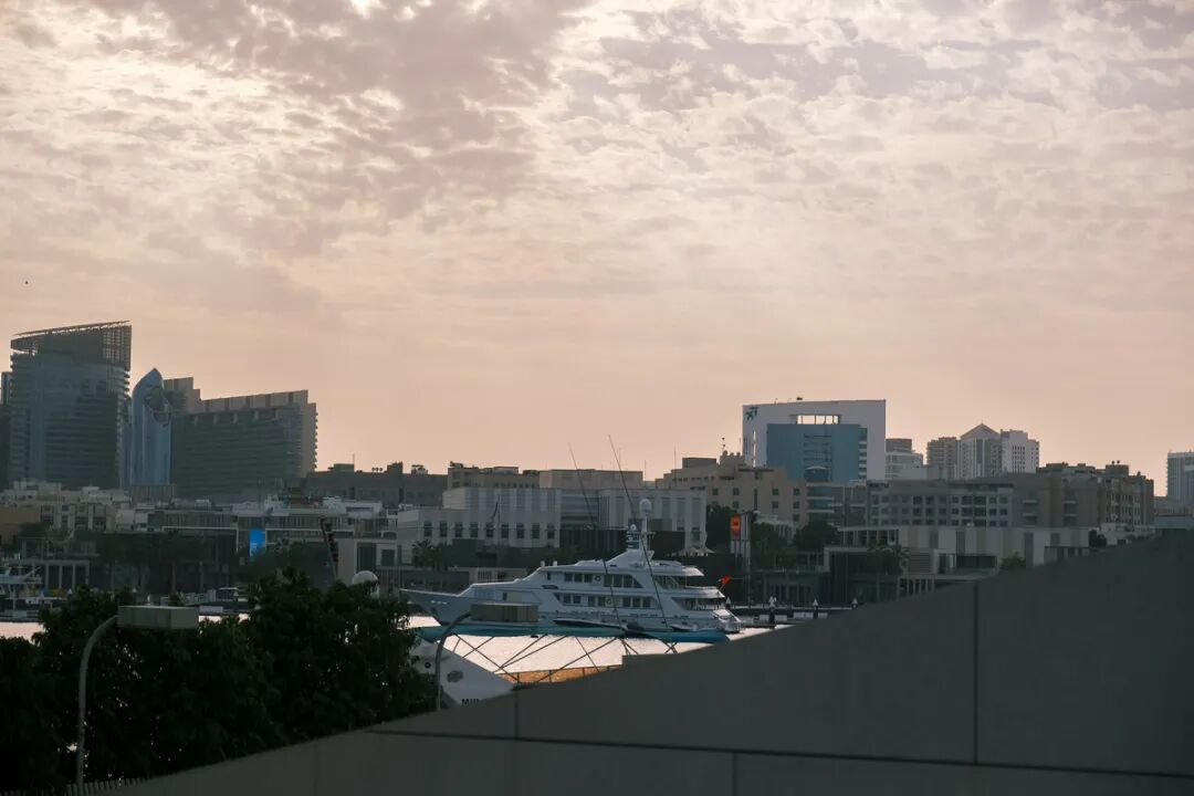 这次我们选择在室外就餐,露天的阳台周围并没有太多过高的建筑,视野相当的开阔。坐着就能看到迪拜河和周围的建筑。倚在椅子上看着天空的碎云,疾飞而过的鸟群,伴随着微风拂过,瞬间整个人就神清气爽起来。