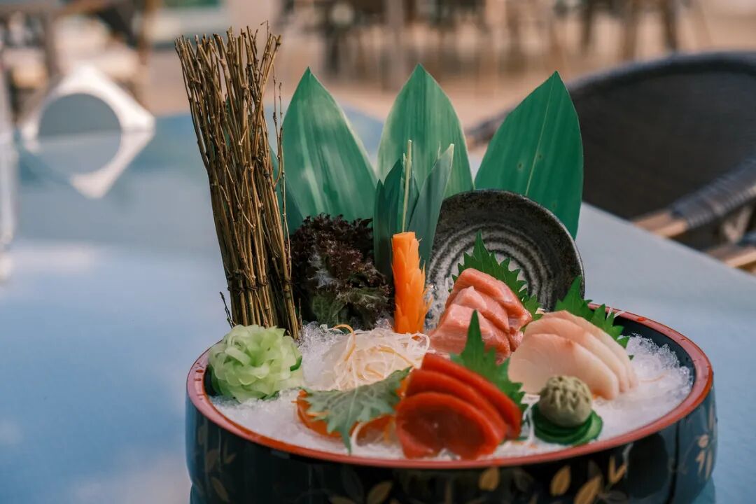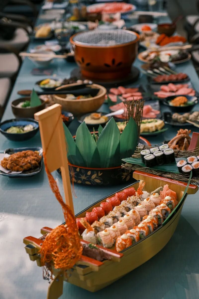 说起木村屋套餐里的美景,当然不得不提寿司船了。当你点了足够多的寿司时,店员便会呈上这条精致的木船。这次我们的船头主要是各式的紫菜卷,船身是各种创新寿司,船尾则是和牛手握。装点上新鲜竹叶,整艘船显得华丽而雅致。顺带一提,小编特别喜欢他们的加州卷,味道清爽香甜,好吃得停不下来。