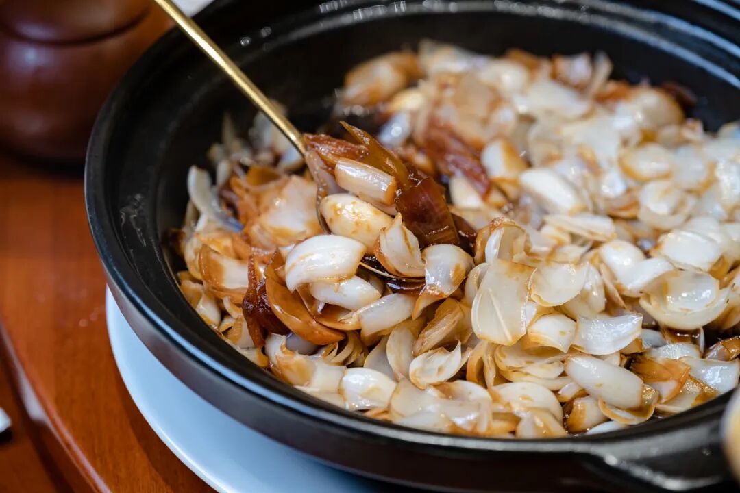 这道菜目前在迪拜独一无二,有作为招牌菜的潜力。首先鲜百合在迪拜市场上就是很难找的,而在大厨的高超技艺下,将百合与蒜瓣,洋葱一同用砂锅生焗。看似简单,但带来的口感却令人印象深刻,又面又甜又糯,吃第一口会有微微的苦味,接着就停不下来了。带有百合特有的清香和清甜,清热去火特好吃!