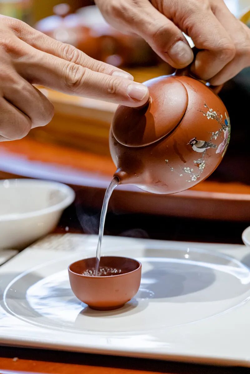 牛尾、当归等多种食材在紫砂壶中炖好,倒出来的肉汤非常清澈,一点不浑浊,确实有如茶水一般,口感清爽解腻。牛尾的香味和当归滋补的香气融合在一起,药味不重,喝完还可以把牛尾吃掉。