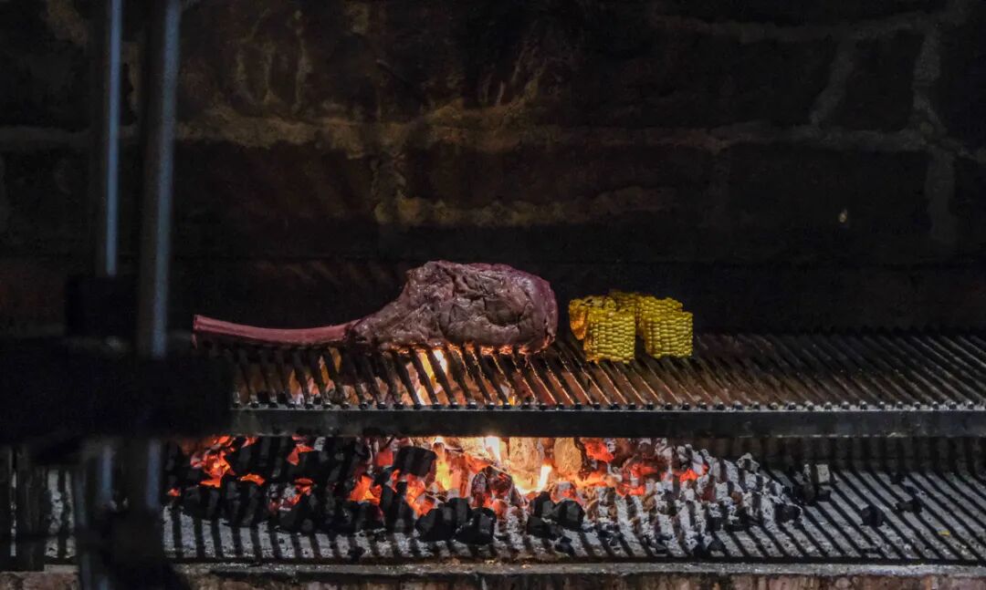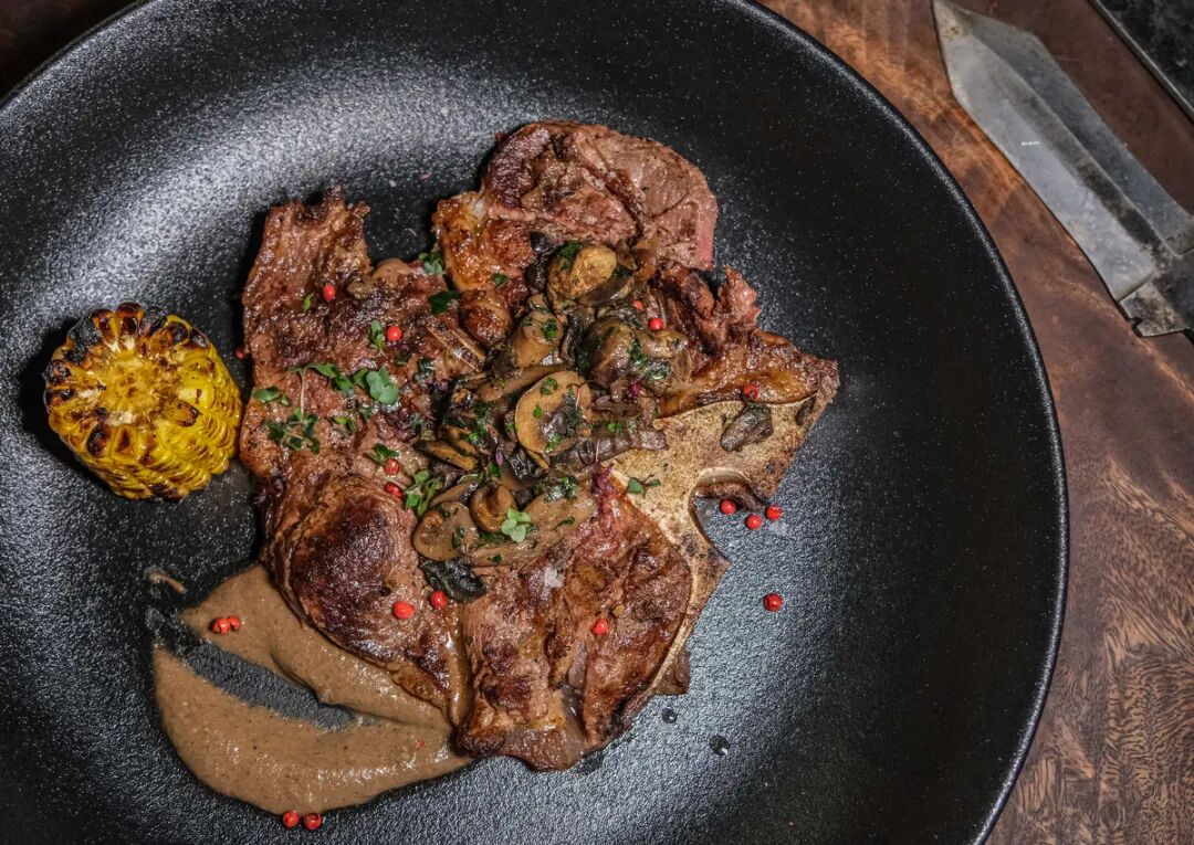巨大的T-bone装在了一个巨大的石盆里端上,还起到了保温的效果。大块牛肉肥瘦适宜,由迷迭香,大蒜和百里香等各种香料腌入味,被炙烤烧出诱人的棕黄色,咬上一口肉汁满满!