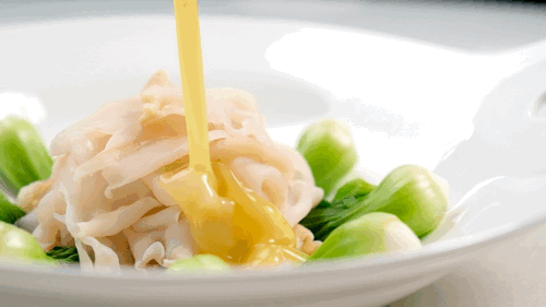 象拔蚌的料理方法不多,但大厨还是研发除了新颖的吃法 —— 过桥!汆烫全熟后的象拔蚌,用高汤现场淋汁,味道极致淡雅,鲜美。