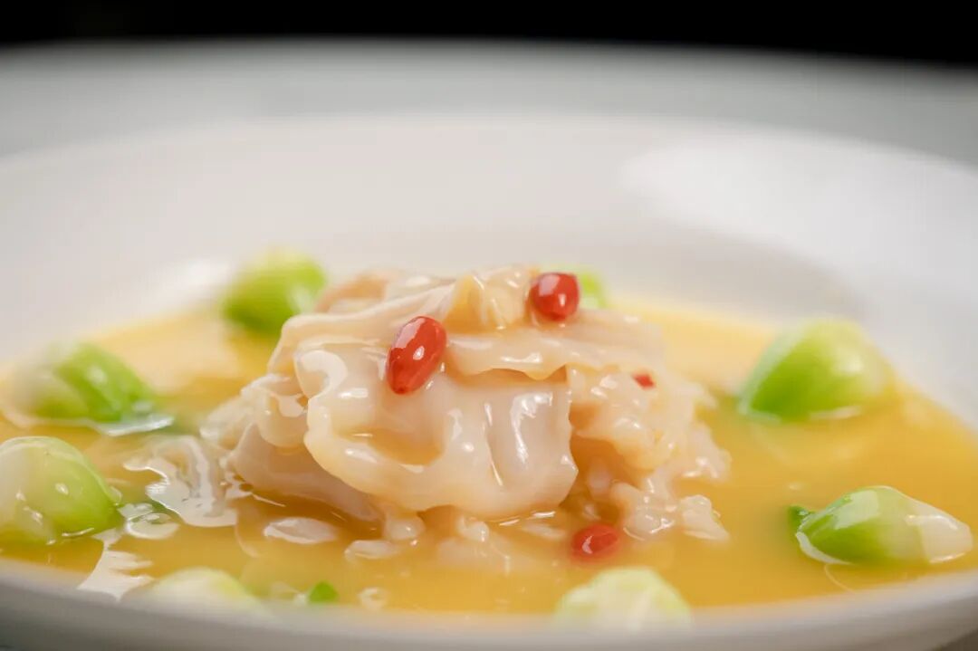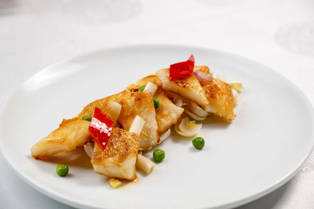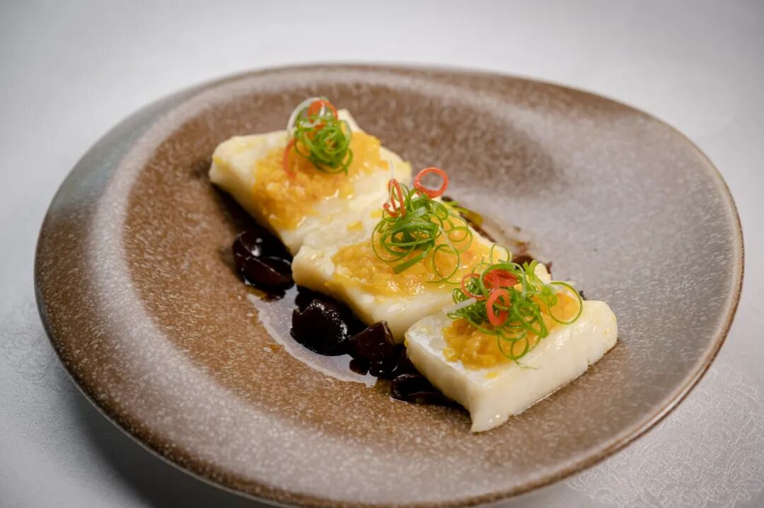 同样是一道鳕鱼菜,但加入了全新的调味 —— 秘制黄灯笼酱。蒸鳕鱼淋上满满的黄灯笼酱汁,而为了照顾不太能吃辣的朋友,这个酱汁并不会非常辣,而是经过反复调配,把黄灯笼椒和彩黄椒按比例融合,既留下了黄灯笼椒的香气,又把辣度调整成微辣,搭配鳕鱼的完美口感,可以说神形兼备。