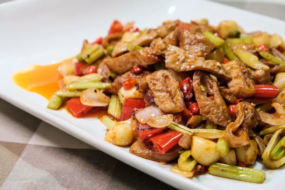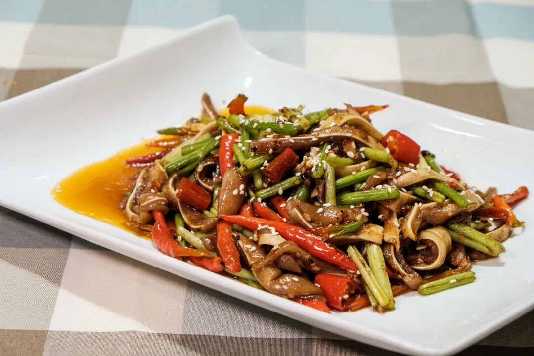 这里的猪肚必须经过多层工艺,洗净过热水再去油脂,才能保持脆而弹牙的口感,再加上干辣椒和秘制辣酱爆炒,看着就过瘾。脆爽Q弹的口感作为重点,给唇齿带来咀嚼快感。