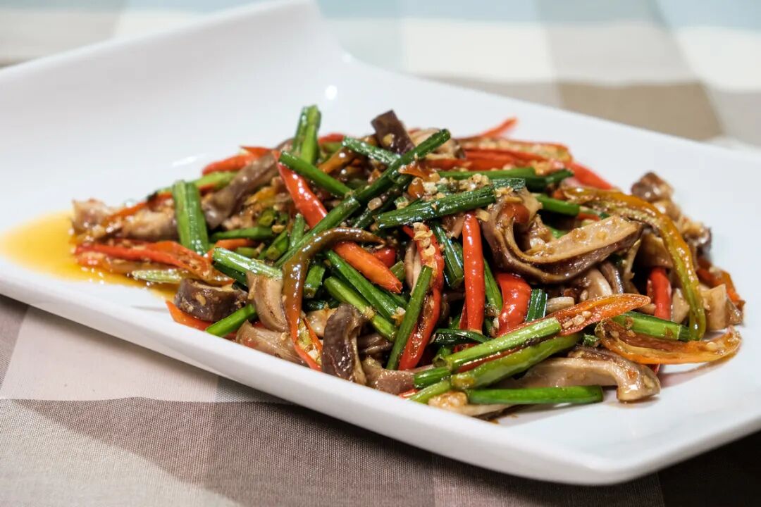 这是款经典的湘式下饭炒菜, 大火快炒使得食材的油香味都完全被逼出, 手法干净没有过多的拖延,使得食材均保持极为爽脆的口感,非常值得一试。