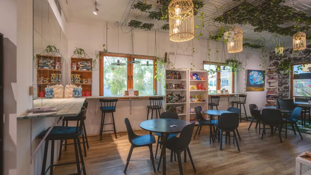这家是由迪拜朱美拉地区的一栋小独栋别墅改造的咖啡店,模式是将画廊和咖啡店的结合,每周末还提供绘画课程,是一个非常安静又充满生机的地方。