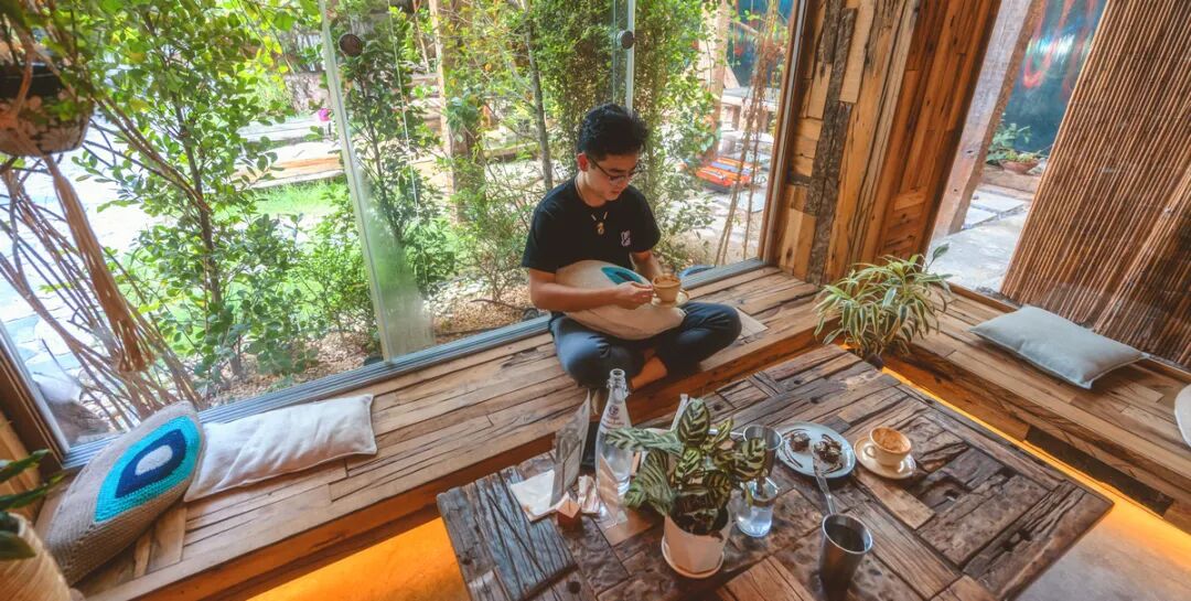 这个自带日式小庭院的咖啡店满是复古的家居装饰,低调且寂静,仿佛时间在这里塌陷。而且这里既是咖啡店,同时也是瑜伽生活馆。每天都有瑜伽课程,包含声音瑜伽、力量瑜伽和仅限女士参加的金莲花瑜伽,在充满绿色的庭院中获得人与自然和谐统一的感受。