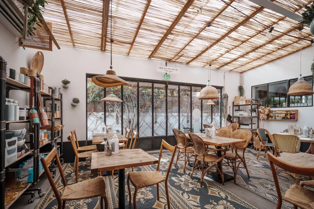 整个建筑设计灵感来自70年代具有摩尔风格的加州别墅,复古又别具一格。这里的咖啡餐厅更强调的是一种健康生活的概念,食材普遍选择有机食品,旨在让每一位顾客体验到原生态,让生活节奏慢下来。