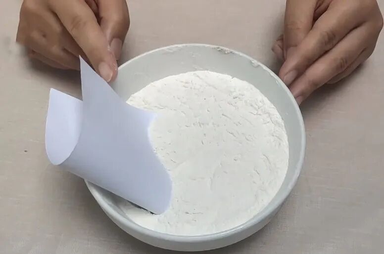 5,将白纸放入面粉中即可。备注:我们可以一次性多操作几张白纸,在面粉里多放几张。