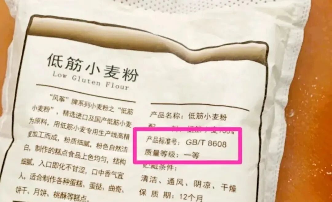 低筋面粉同样也可以通过执行标准来辨别,它的标准是:GB/T8608!大家一定要记住,如果不是这个标准的,一定不是低筋面粉!