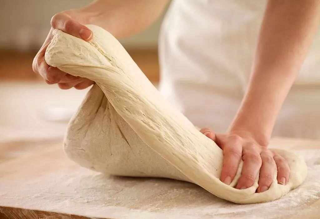 注意:把发酵好的面,从盆中取出后,不仅要多揉几遍。每揉一遍的时候,用刀把面团切成几块,然后再合在一起揉,这样的二次醒发的效果会更好!