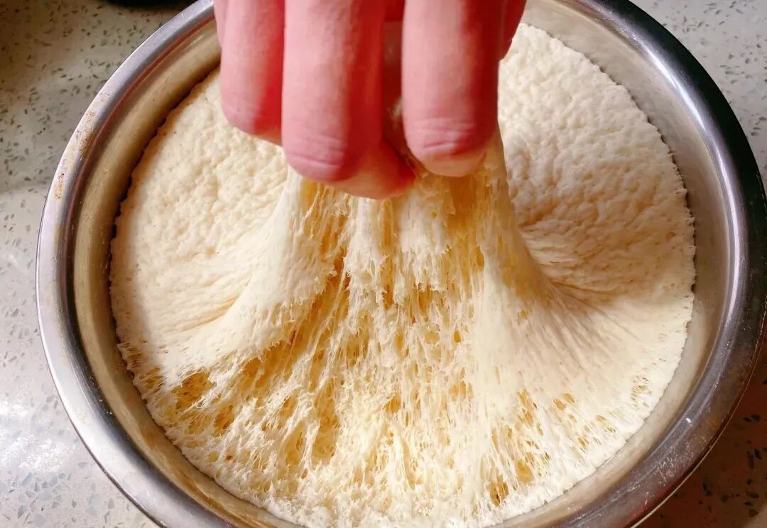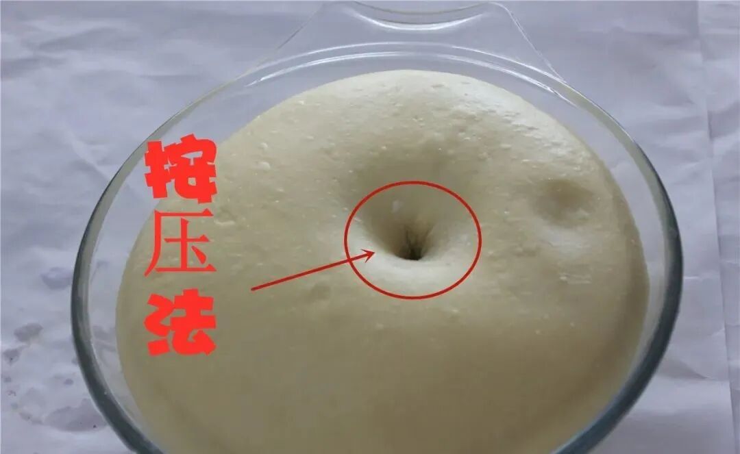 首先,我们可以通过按压法来观察面团是否醒发到合适。具体的做法是用手指按压一下面团,当手指抽出后,如果手指印周围的面团不反弹,也不塌陷,则表示面团醒发得刚刚好!如果是手指印周围的面团塌陷,则表示面发大了!同理,如果是手指印周围的面团按压后有反弹,则表示面团没有醒发好!