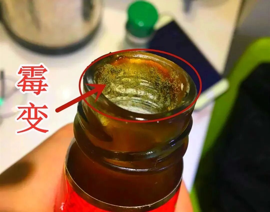 小贴士:很多朋友会看到蚝油瓶子的瓶口处会有霉变,其实这就是常温存放的结果,而瓶口处霉变的,说明瓶内的蚝油也已经变质,不宜再食用!
