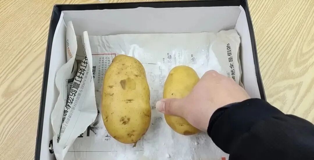 这个方法一是可以避免土豆进行光合作用;二是事先把土豆外皮的水分晾干,再加上餐巾纸和纸箱都可以吸附水分,确保土豆周围的环境干燥;所以,这样保存的土豆哪怕是放一年照样不生芽不发黑!