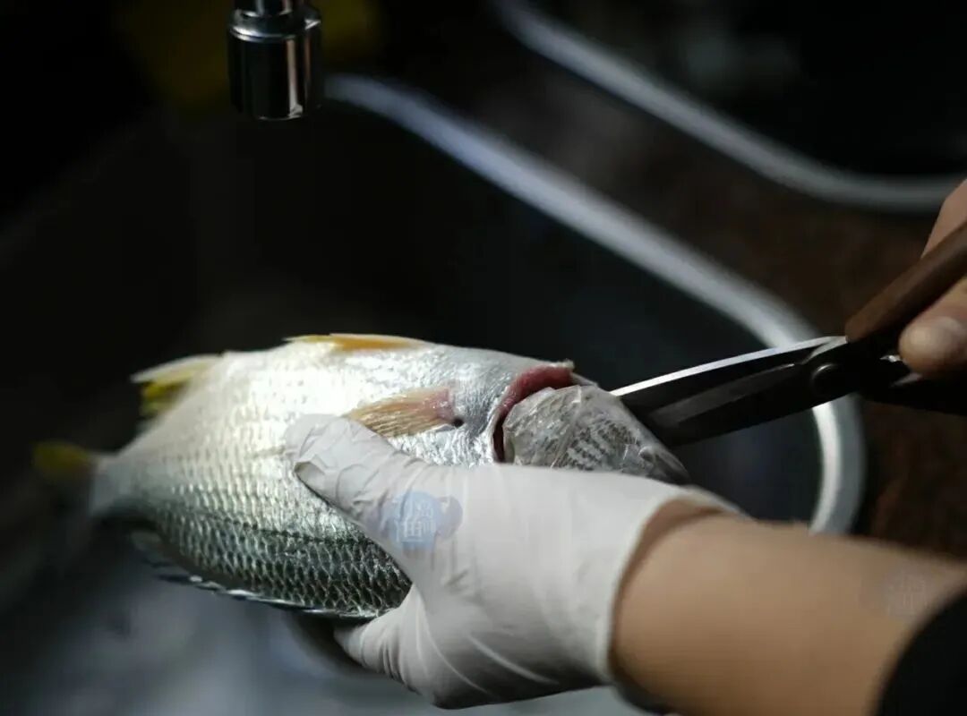 去除鱼鳃的方法:去除鱼鳃最快最简单的就是用剪刀,剪断鱼鳃的一段,然后把鱼鳃挑出来后,再剪断另外一端;而另一边的鱼鳃,也用同样的方法处理即可,这样处理鱼鳃非常的省事!