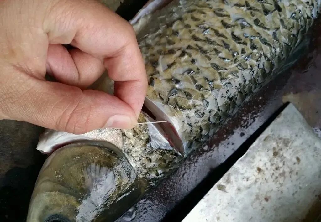 处理鱼血的方法:鱼的两侧从头到尾各有一条动脉连接着鱼的心脏,想要把鱼血处理干净,首先要去掉鱼鳃,并在再在鱼尾处切一刀,这样使血管两端通畅,这样放血就更快,也能处理的更加干净了!