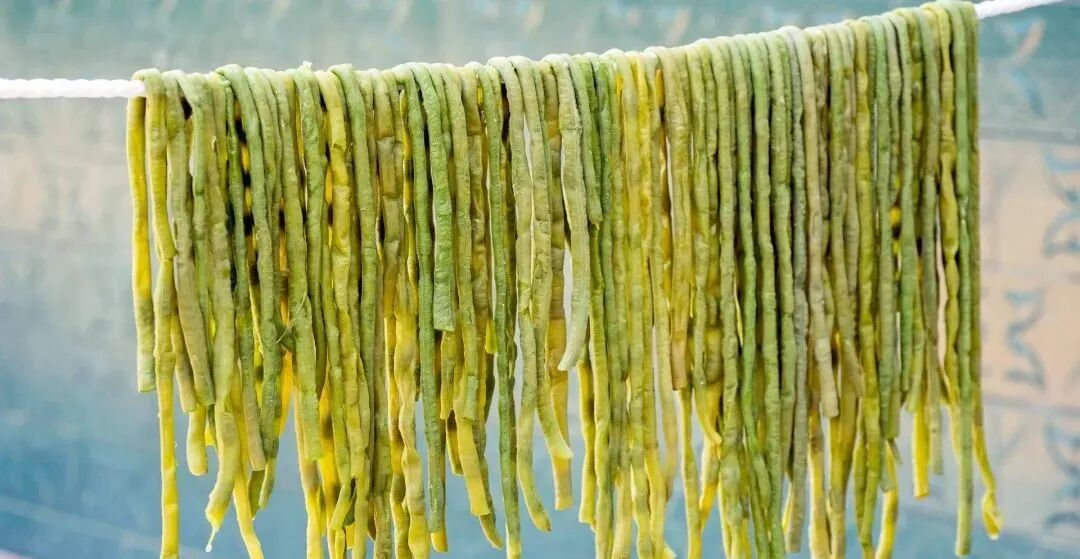 步骤二:煮好的豇豆角要先过一遍冷水,要不然会发黏,且易断,过完凉水后再拿到太阳底下,挂起来晒干即可!