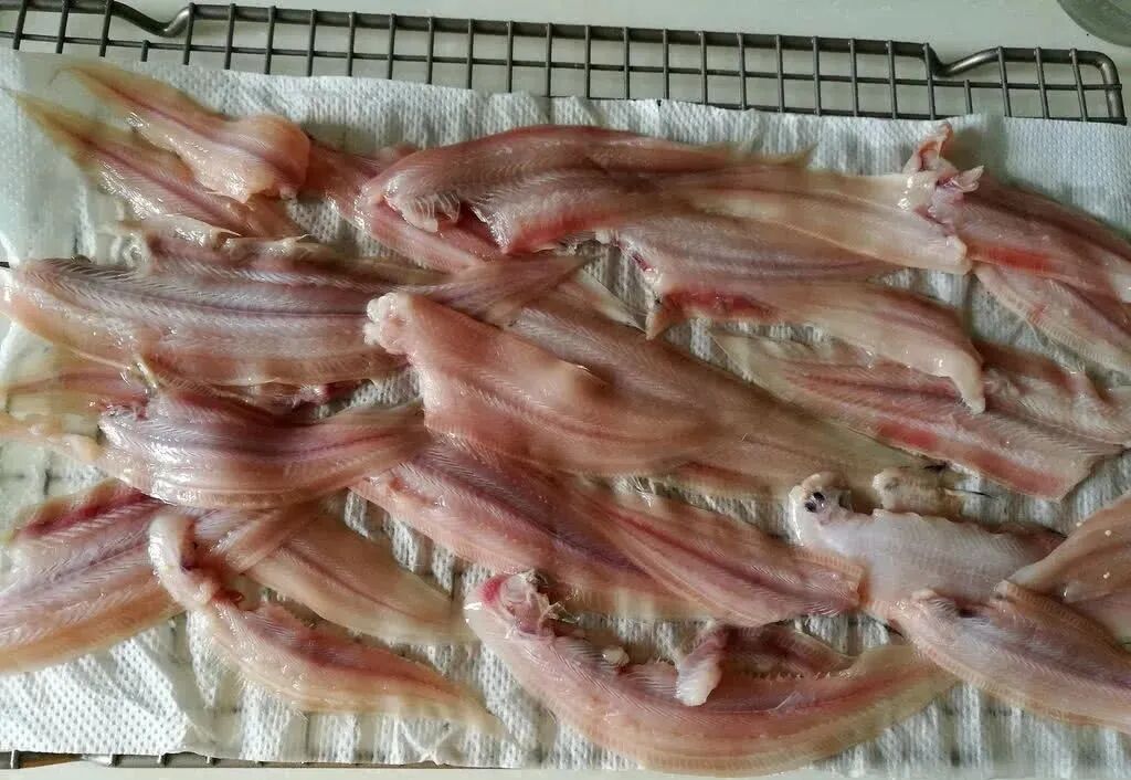 做法:舌头鱼哪都好,就是鱼皮很厚,所以,在烹调舌头鱼时,要先把它的鱼皮撕下来,再去掉鱼鳃,冲洗干净后放入盆中,用葱姜腌制一会;