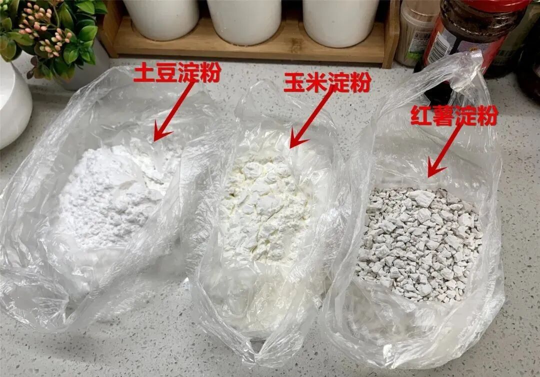 而我们说的淀粉,其实是一个很大的统称,除了所包含的生粉外,还包括并不限于小麦淀粉、绿豆淀粉、豌豆粉、芡实粉、菱角粉、甘薯淀粉以及红薯淀粉等。